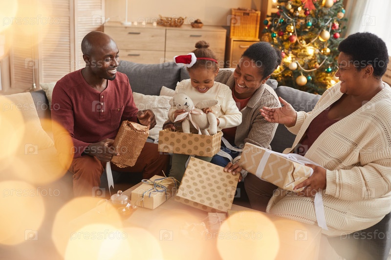 Большая афроамериканская семья празднует Рождество вместе