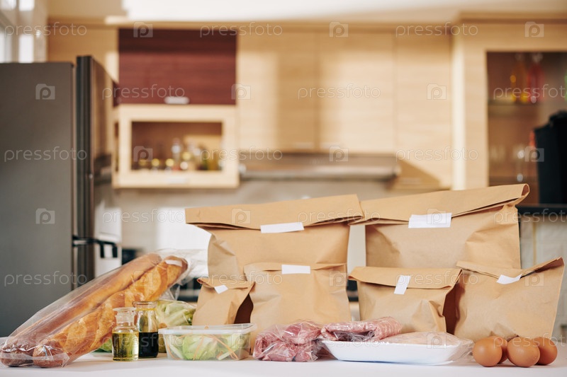 Кухонный стол с доставленной едой