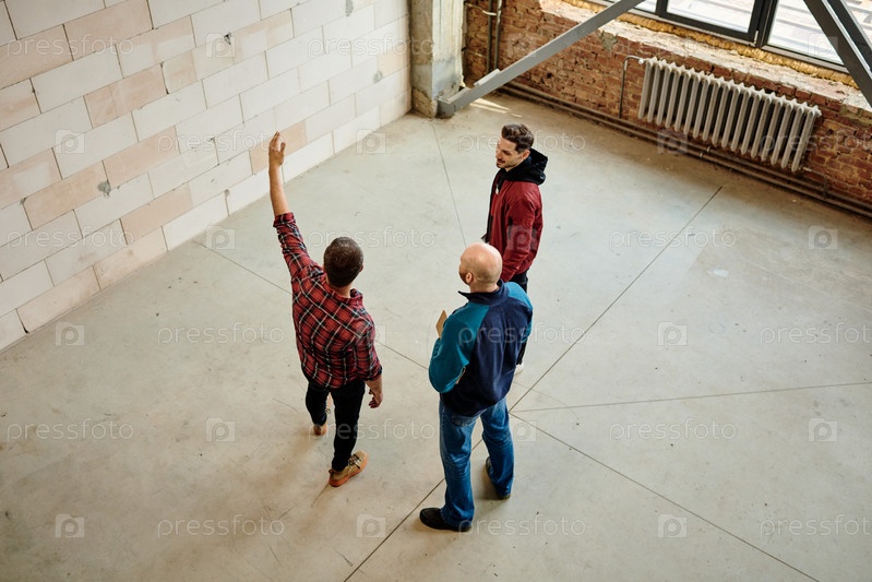 Инженеры обсуждают качество материалов, в то время как один из них указывает на стену
