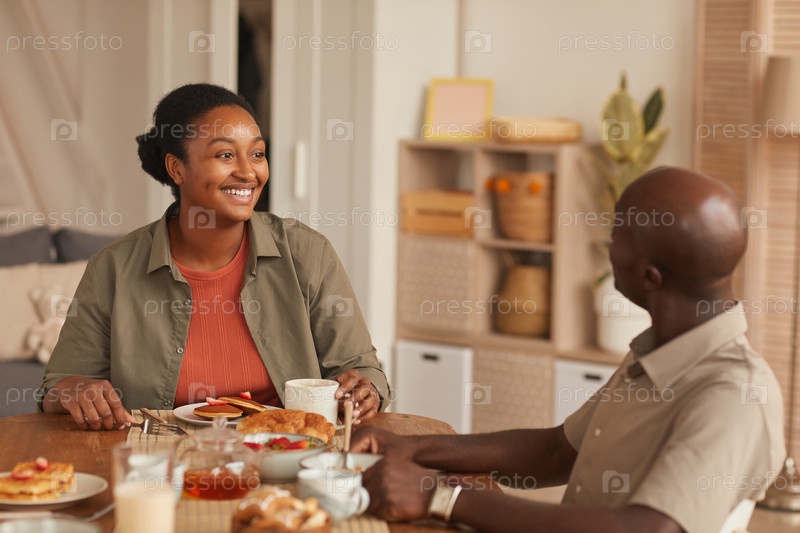 Афроамериканская пара наслаждается завтраком
