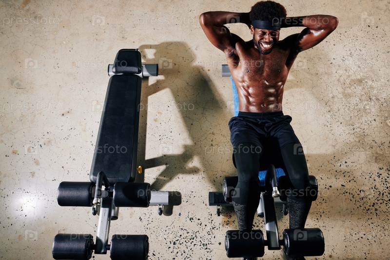 Спортивный мужчина на брюшной скамейке