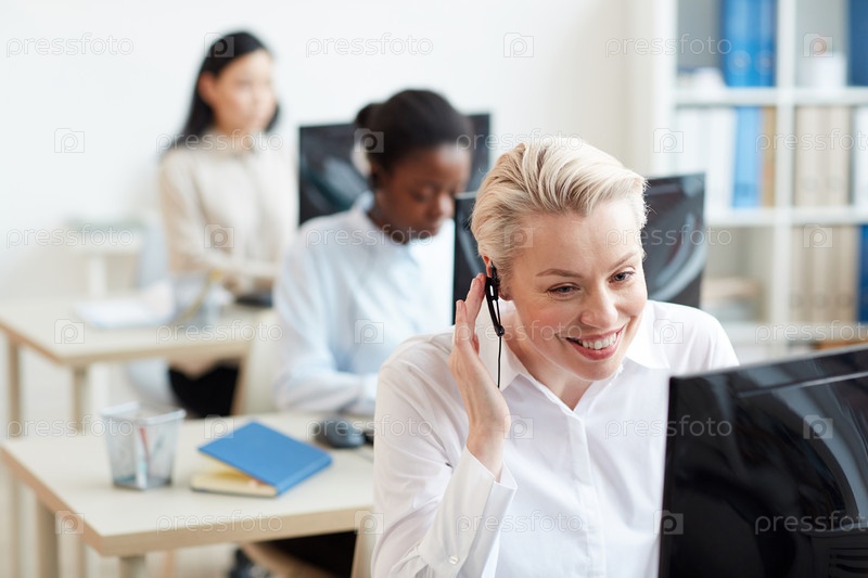 Ряд женщин-операторов в офисе