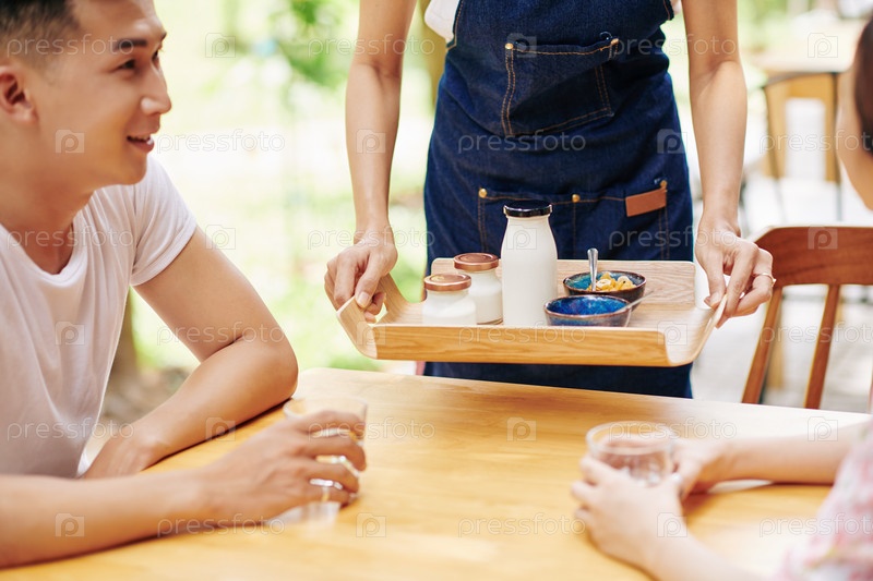 Официантка подает завтрак