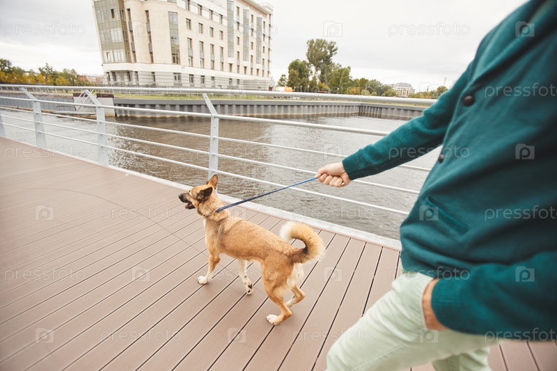 Мужчина с собакой на открытом воздухе