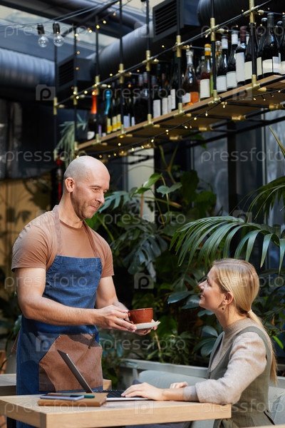 Женщина заказывает кофе