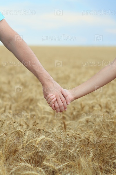 Рука в руке среди пшеничных колосьев