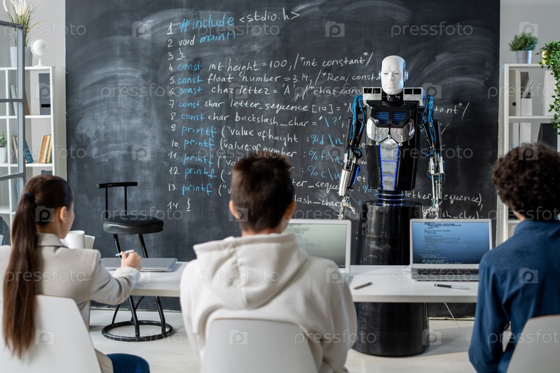 Робот нового поколения представляет технические данные группе студентов