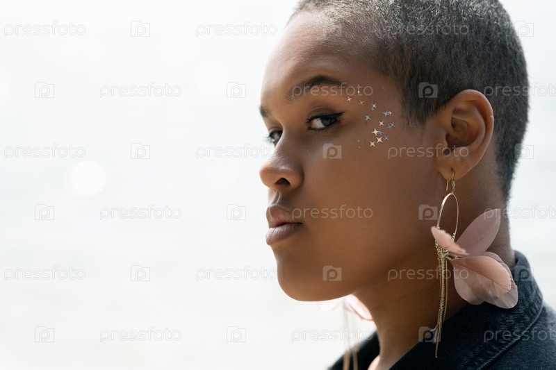 Молодая афроамериканская женщина с блеском вокруг глаз