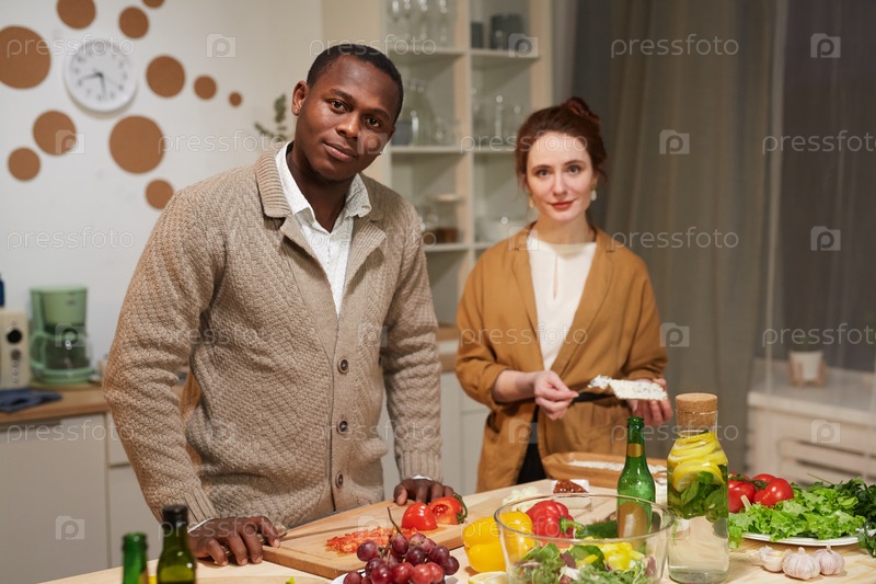 Молодая пара стоит на кухне