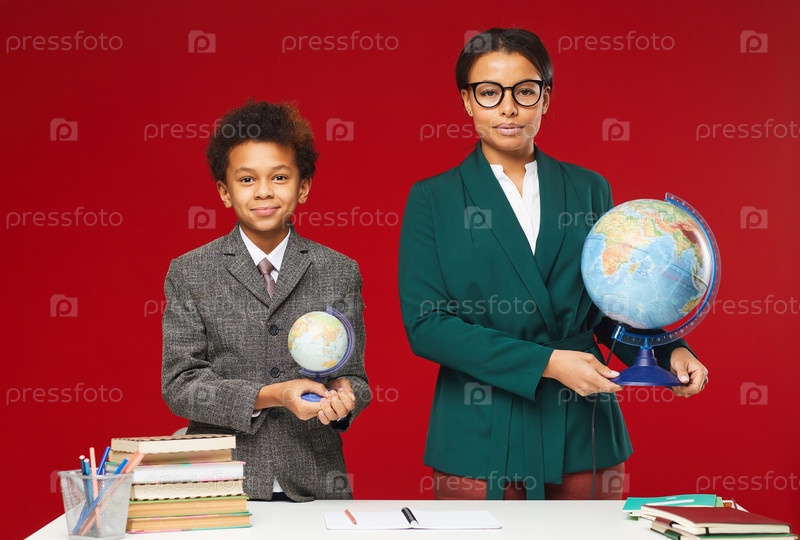 Студенты и учителя, держащие глобусы