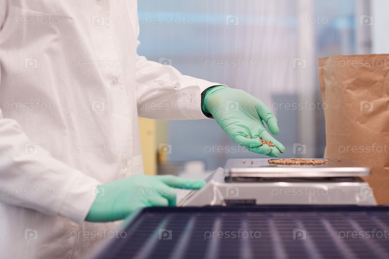 Человек, взвешивающий семена