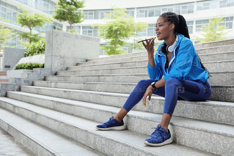 Спортсменка записывает голосовое сообщение