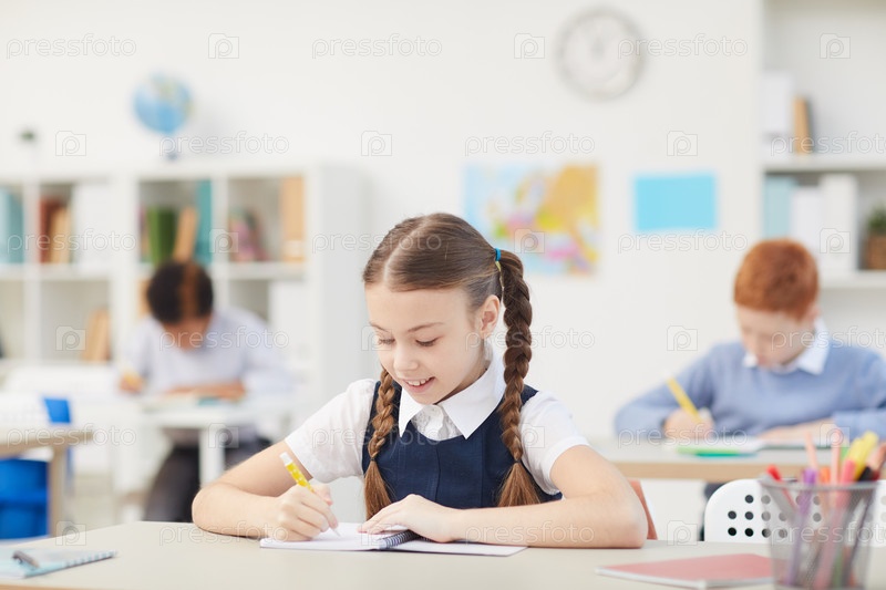 Ученица, работающая за столом