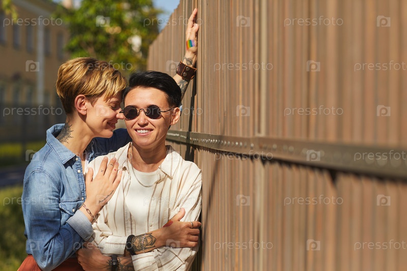 Счастливые лесбиянки на открытом воздухе
