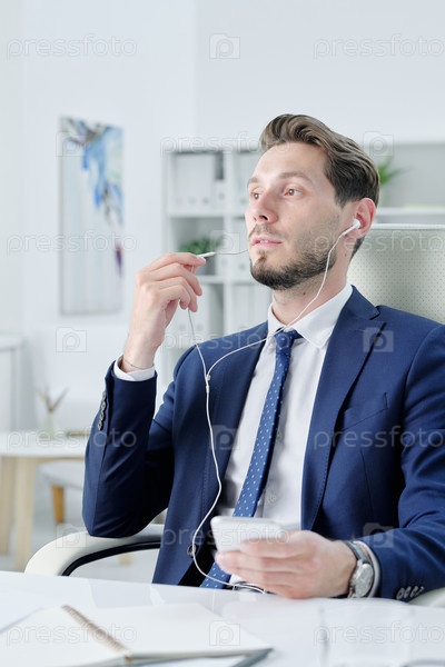 Бизнесмен наслаждается музыкой в наушниках