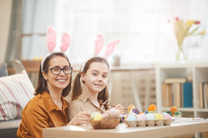 Семья рисует яйца на Пасху