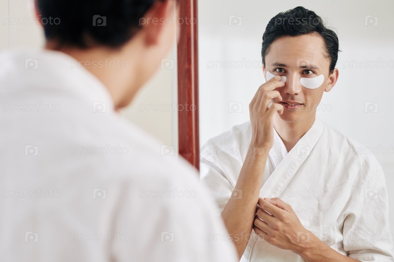 Мужчина наносит повязки за глаза
