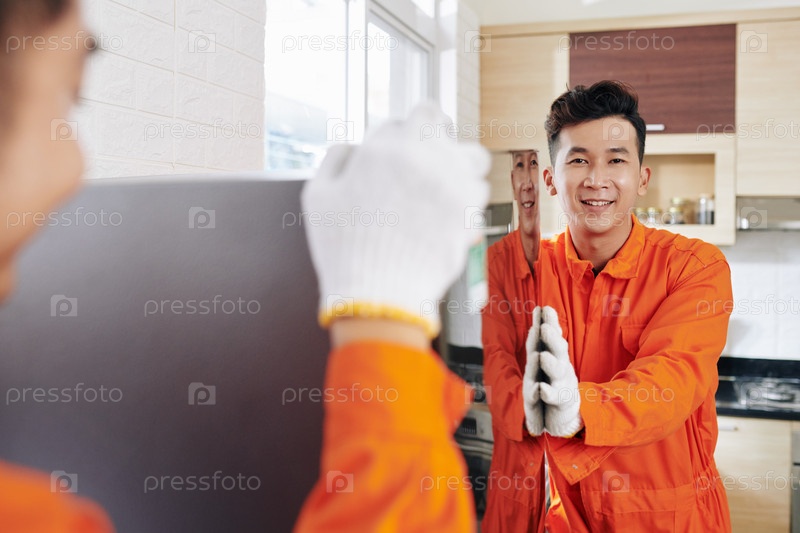 Перемещение работников сервисного обслуживания, перевозящих холодильник