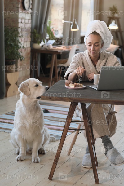 Женщина завтракает дома