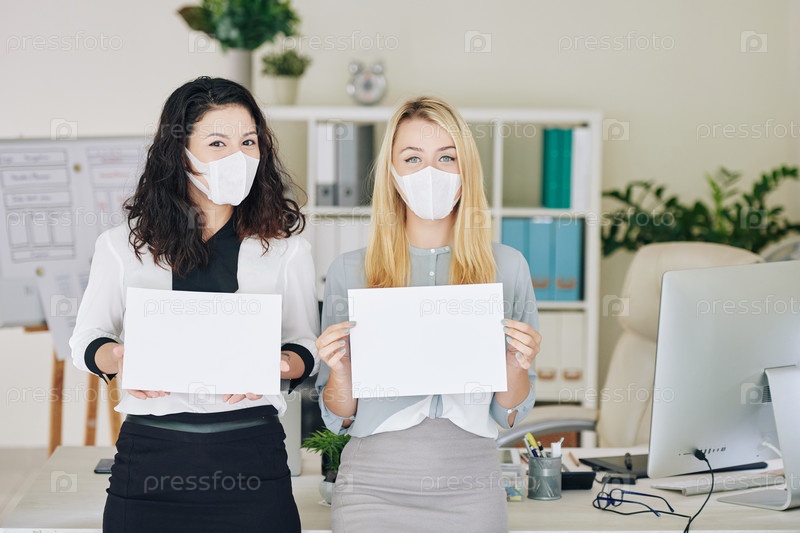 Деловые женщины показывают белые пустые листы