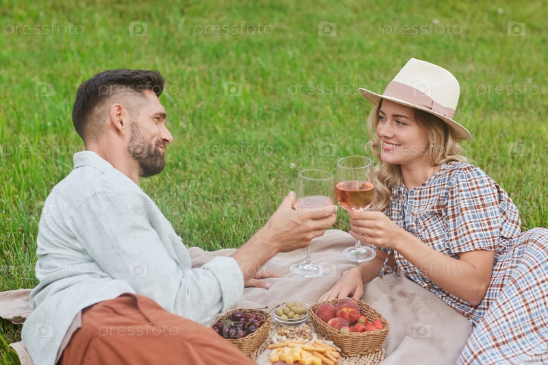 Романтическая пара наслаждается пикником на свежем воздухе