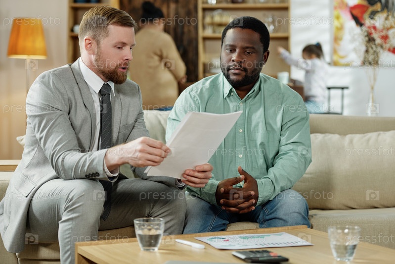 Черный мужчина с консультантом по ипотеке