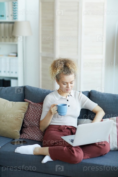 Женщина отдыхает с ноутбуком дома