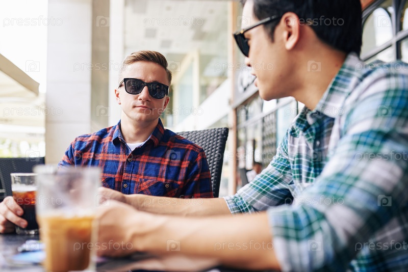 Друзья обсуждают новости в кафе