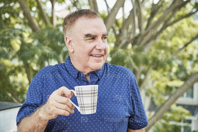 Пожилой человек с кружкой кофе