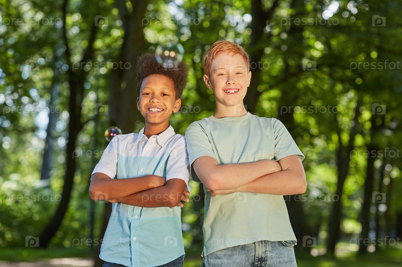 Два приятеля позируют на открытом воздухе в парке