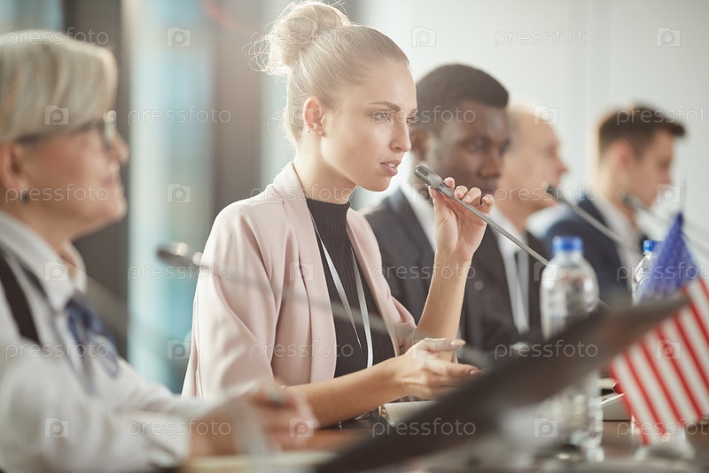 Молодой политический лидер выступает