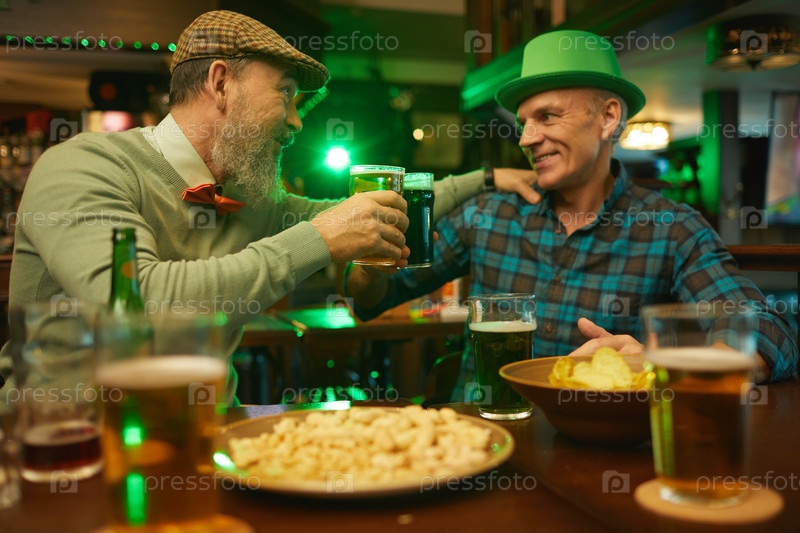 Зрелые друзья пьют пиво в баре