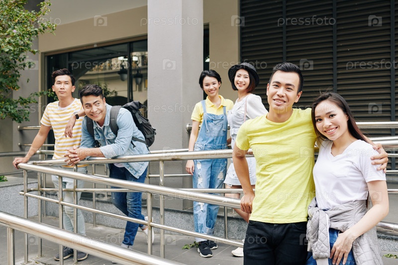 Веселые азиатские студенты колледжа