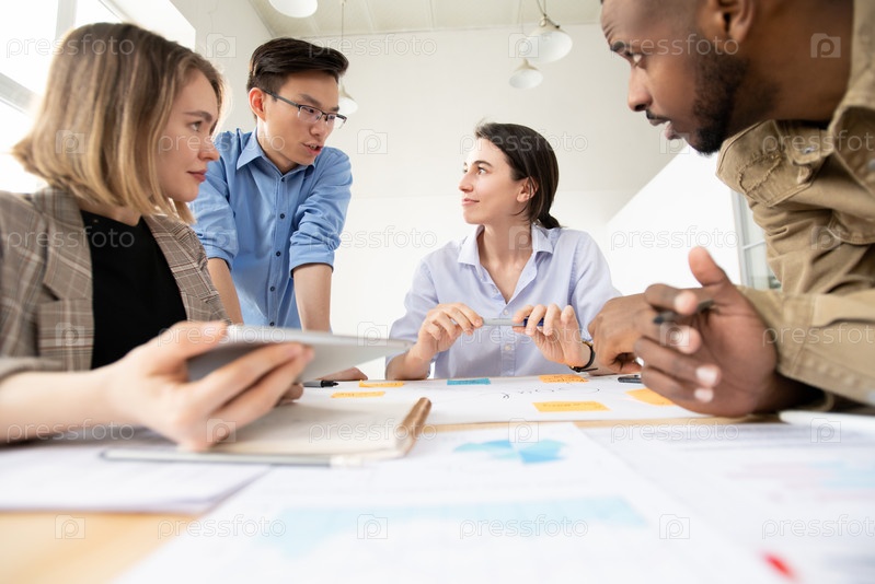 Молодой китайский бизнесмен смотрит на одного из коллег, объясняя свою идею