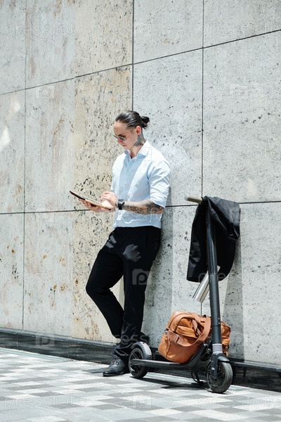 Бизнесмен читает онлайн документ
