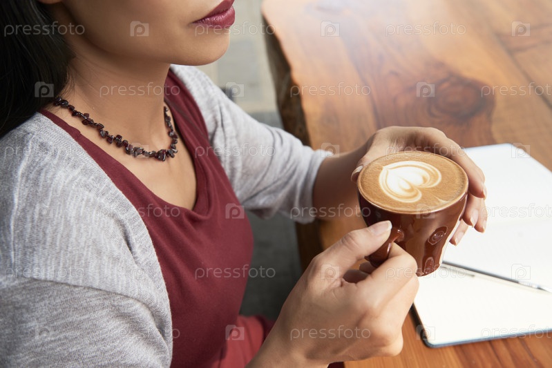 Женщина пьет капучино