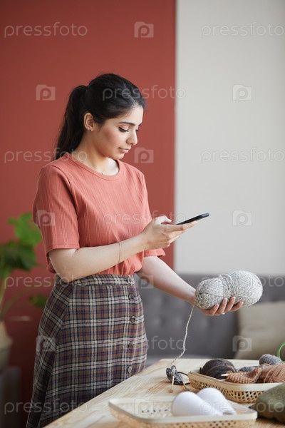 Женщина делает обзор шерсти