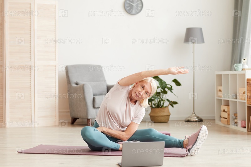 Женщина делает упражнения дома