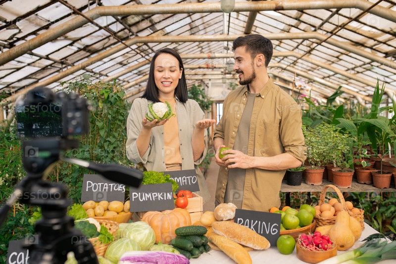 Пара фермеров снимает видео о овощах