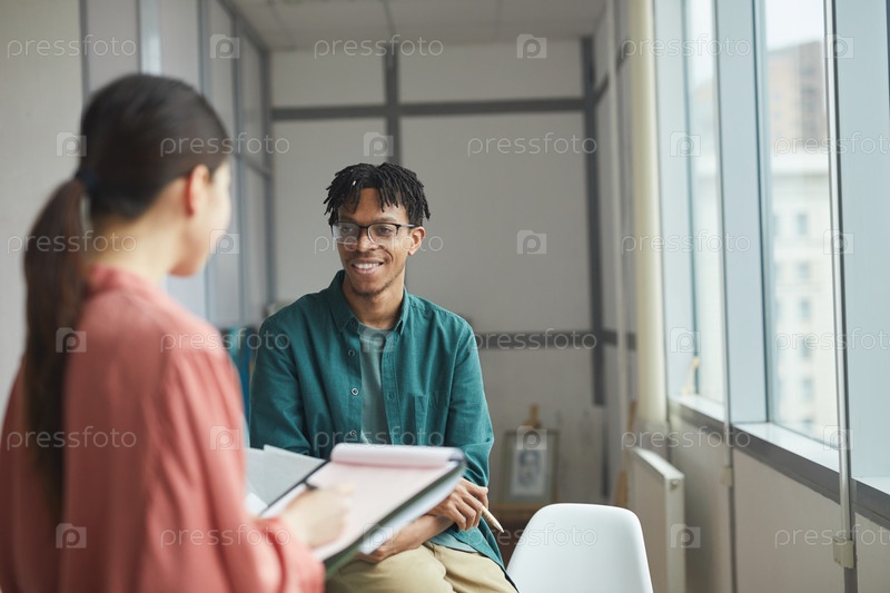 Два коллеги обсуждают в офисе