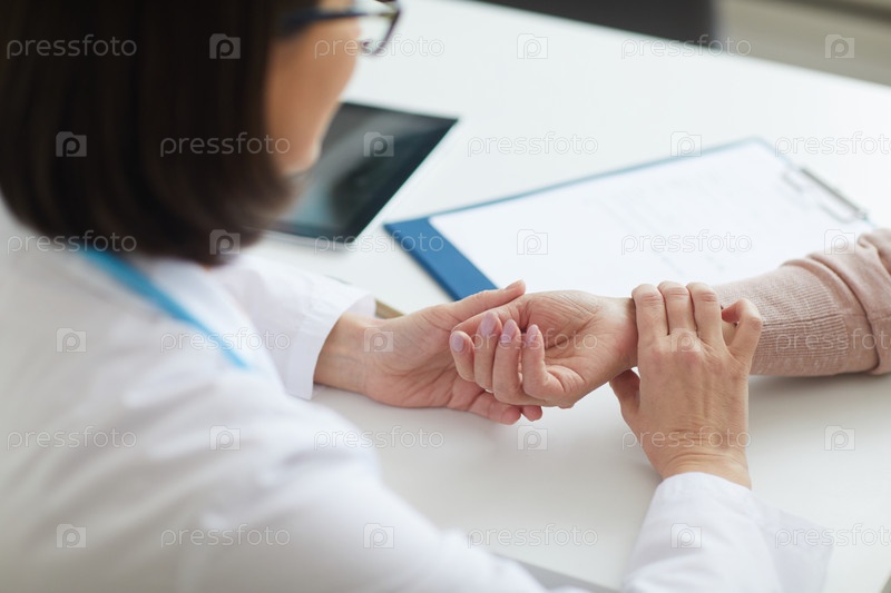 Врач проверяет пульс старшего пациента