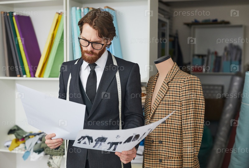Модный дизайнер, работающий с эскизами