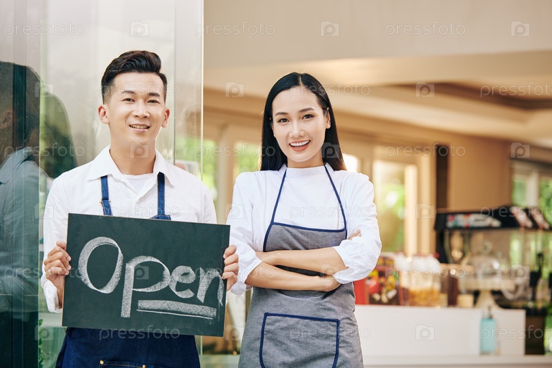 Владельцы кафе приветствуют клиентов