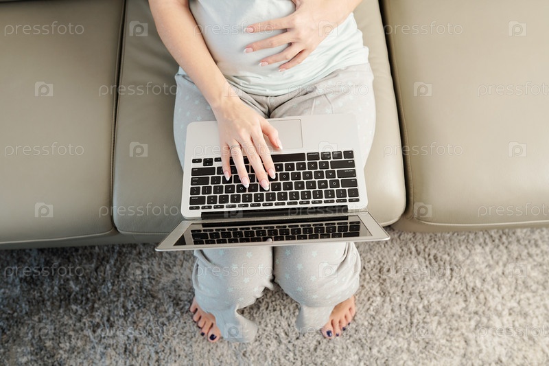 Беременная женщина с ноутбуком