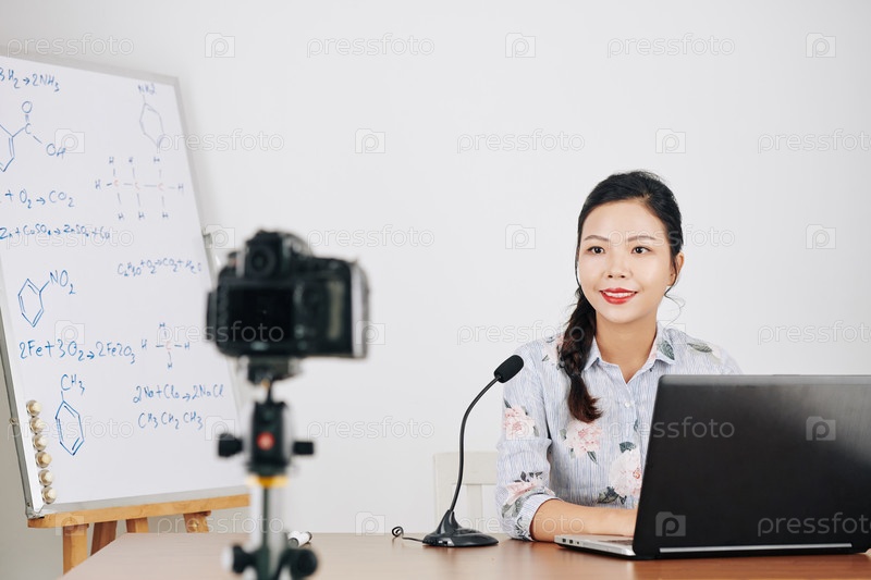 Женщина преподает химию онлайн