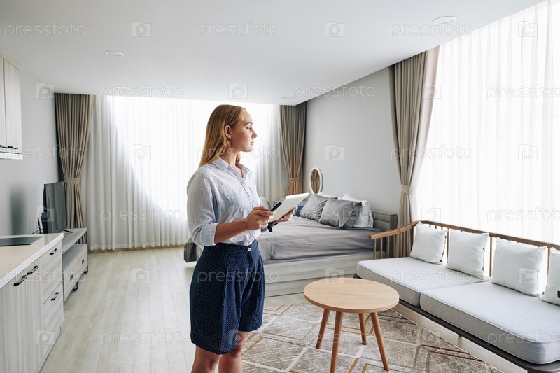 Молодая женщина в квартире-студии