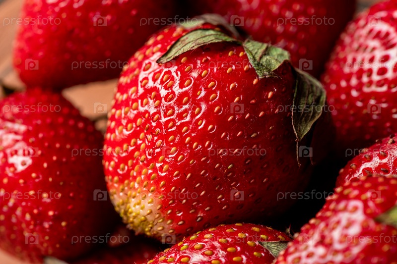 Куча свежей спелой красной клубники, собранной в саду для еды или сушки