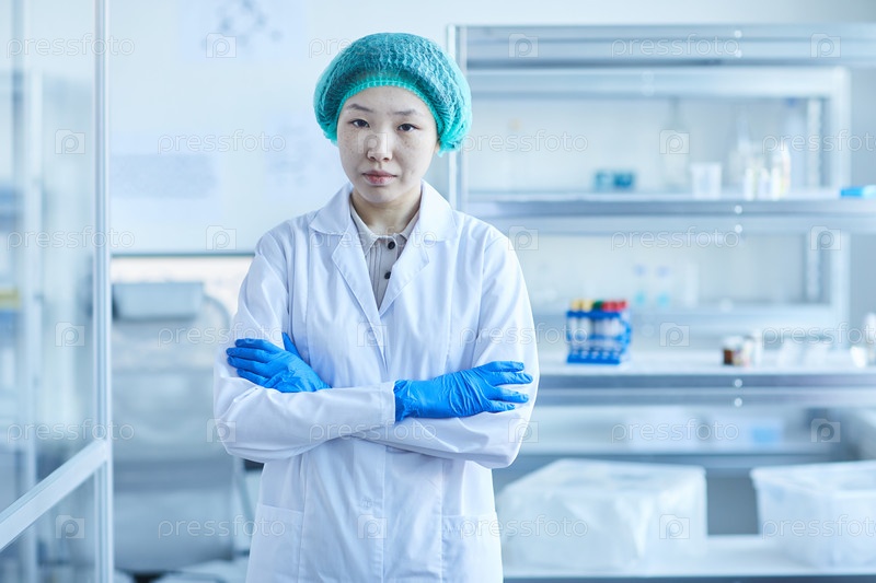 Серьезная женщина-азиатский лабораторный работник