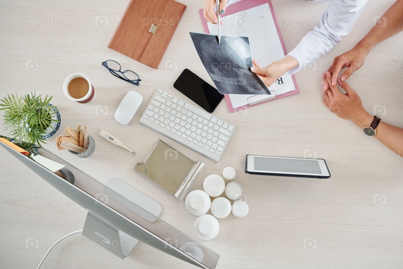 Врач показывает рентген позвоночника