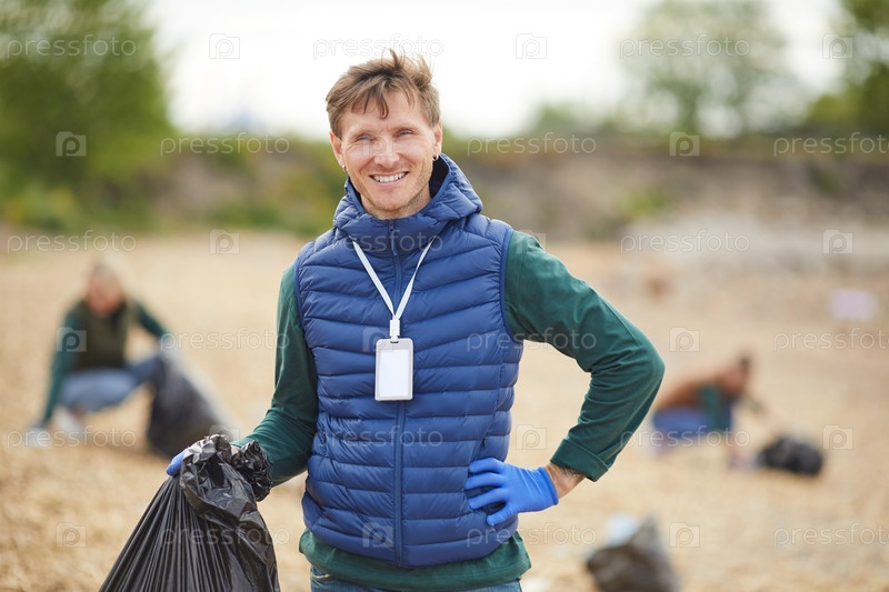 Доброволец с мусором на открытом воздухе